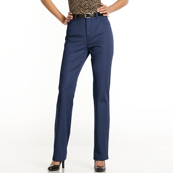 Chaps Women S Petite Straight Leg Pants 4 Regular Blue At Amazon Women S Clothing Store